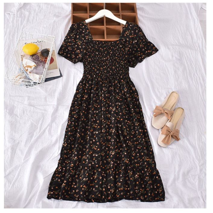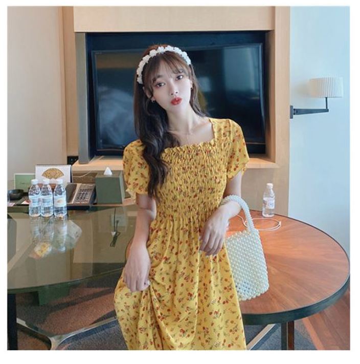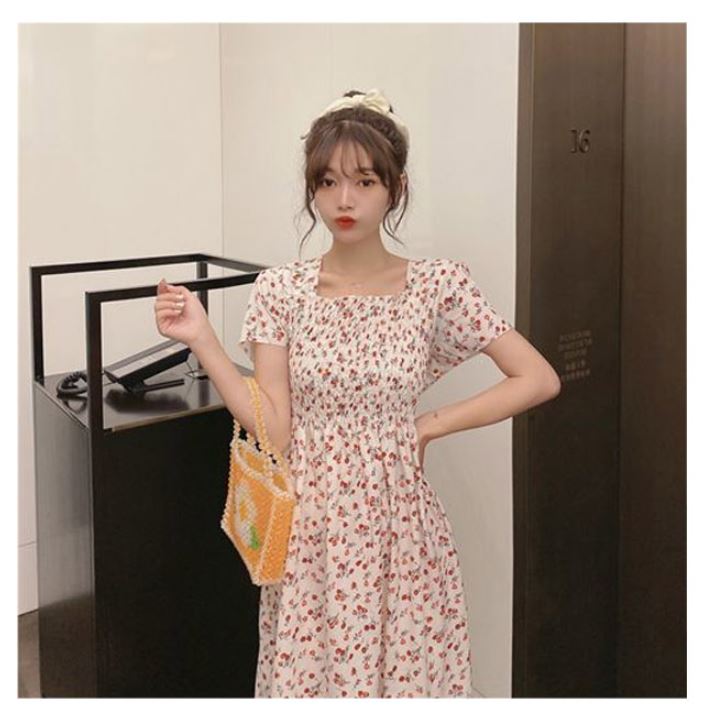 여름 꽃무늬 원피스 허리주름 플라워 샤랄라 원피스 스모크밴딩 데이트룩 : 필수템샵