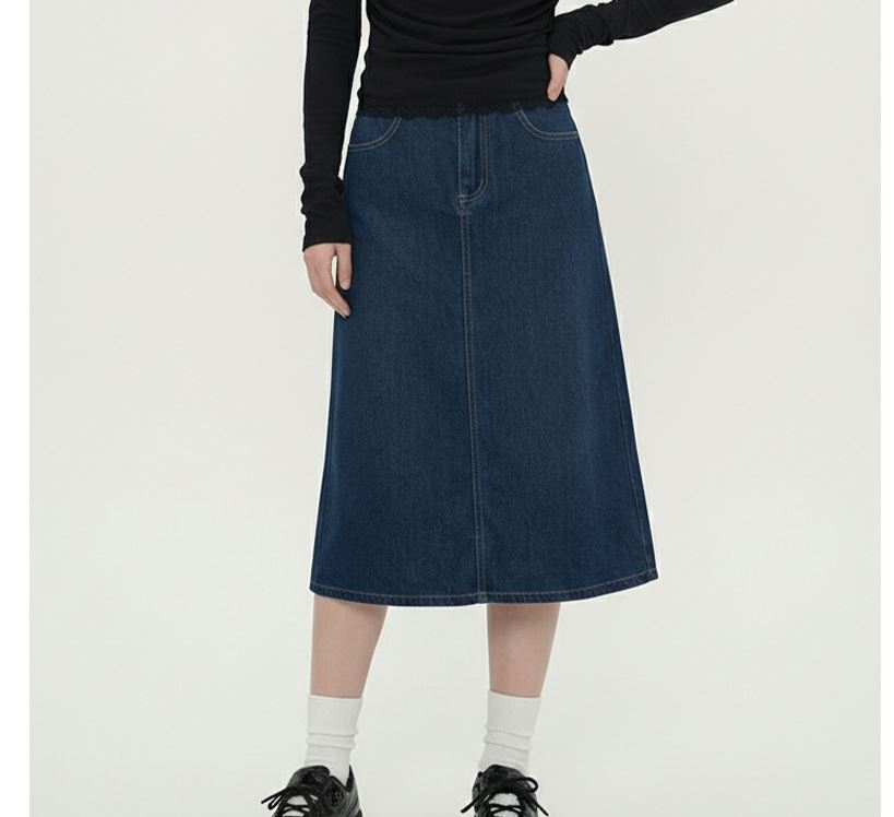 여자 롱 청치마 데님스커트 A라인 스커트 진청 봄 가을 여름 빅사이즈 : 필수템샵